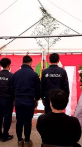 このたび、第二車庫にて事務所新築工事の地鎮祭を関係者の皆様ご臨席のもと無事に執り行いました。